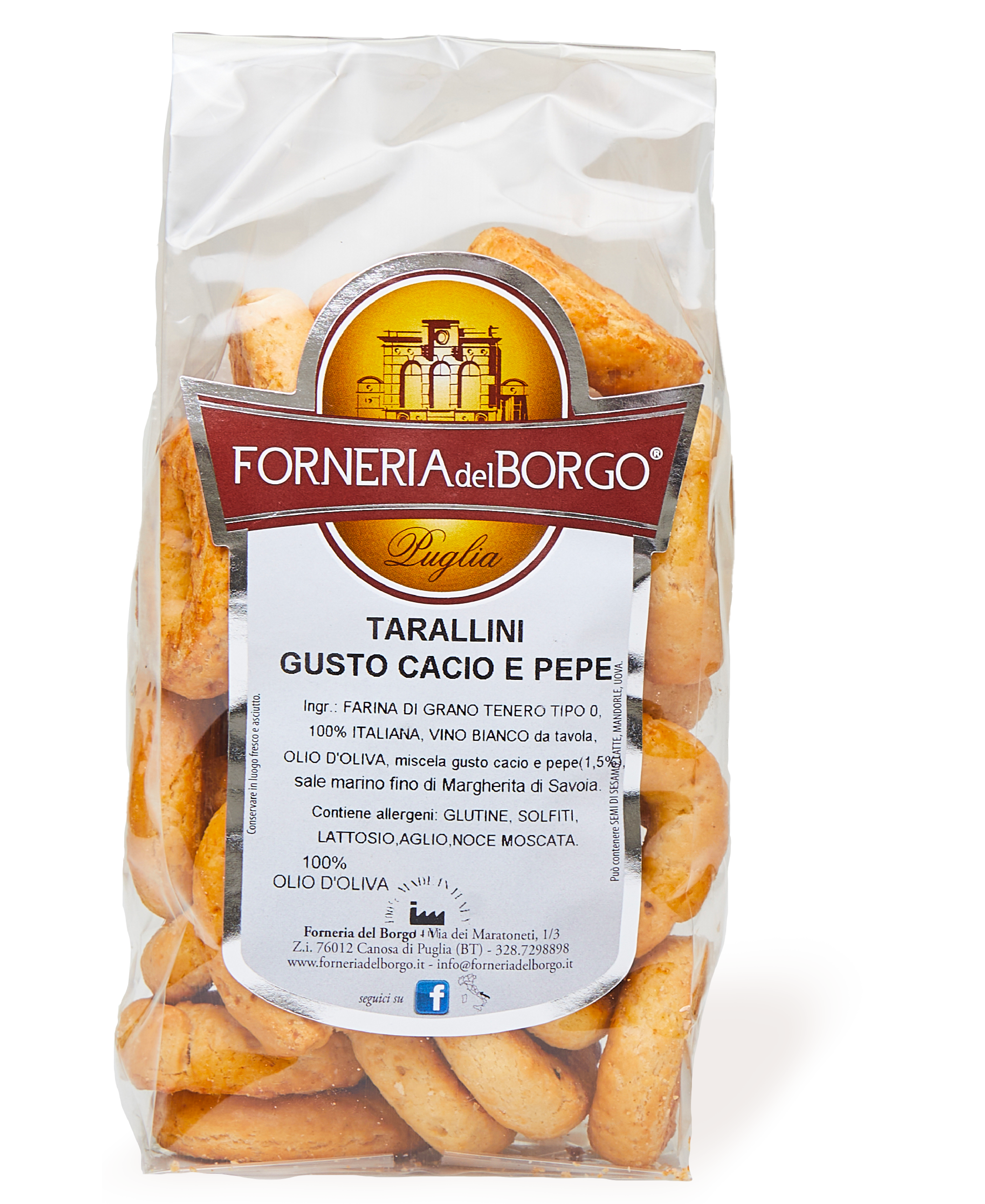 VINO BIANCO da tavola, olio d’oliva, miscela gusto cacio e pepe(1,5%) sale marino fino di Margherita di Savoia, pepe nero macinato (1%).